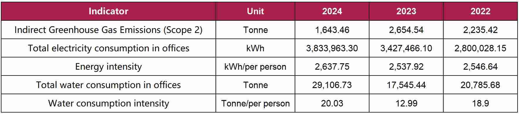 · Energy conservation awareness campaigns: The Company guides employees to reduce energy waste by monitoring electricity consumption data, posting energy-saving slogans and providing information reminders (such as reminders to shut down office computers).