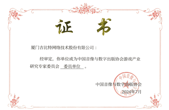 2024年7月25日,,,,中国音像与数字出版协会游戏产业研究专家委员会(以下简称“中国音数协游戏专委会”)成立大会在上海市召开,,,厦门J9.COM网络技术股份有限公司及其子公司深圳雷霆信息技术有限公司(以下统称“公司”)正式成为中国音数协游戏专委会委员单位。。。