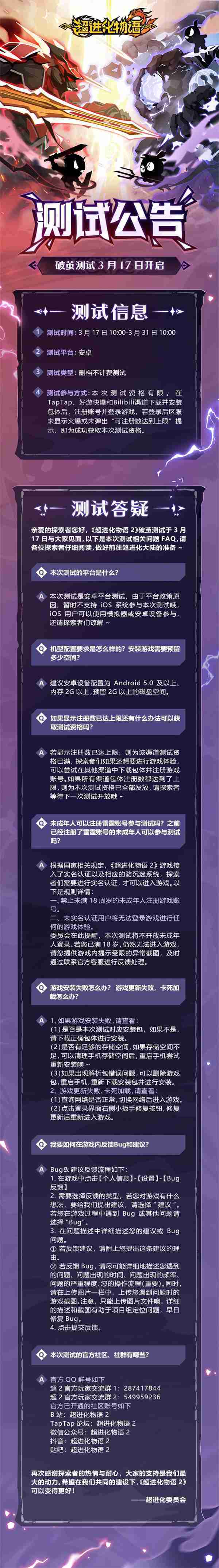 《超进化物语2》首次限号不计费删档测试——「破茧测试」将于3月17日开启,,,,随我们确认测试细节,,明天迈出踏上超进化大陆的第一步吧!!