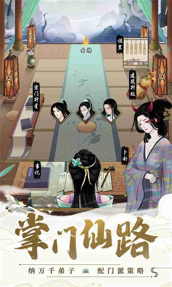 在游戏中,,,玩家需要作为掌门去经营整个门派,,,,可以兢兢业业,,也可以做个甩手掌门,,或者不务正业,,寄情山水……总之一句话,,,修仙不求人,,,花式做掌门!!