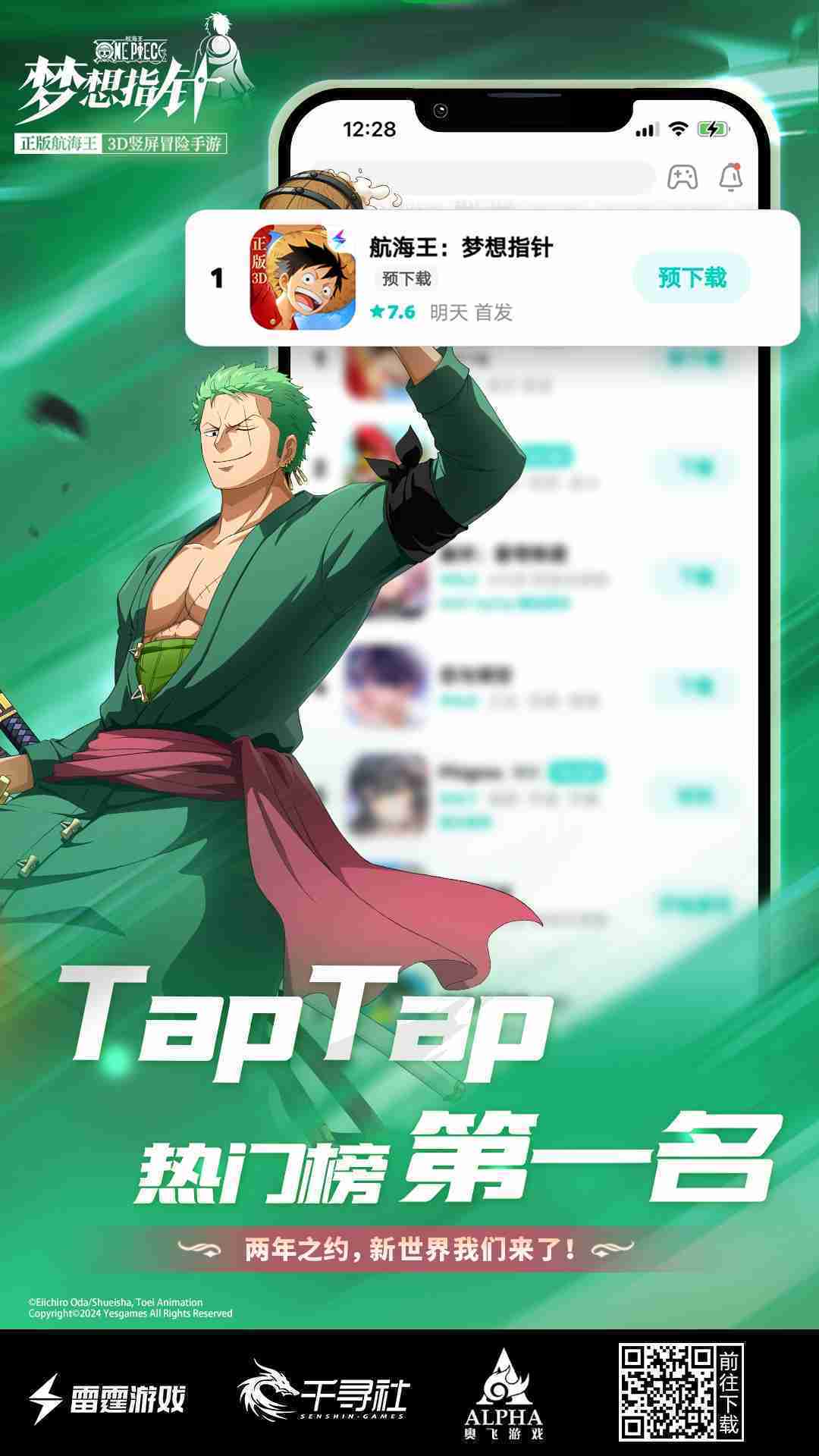 4月1日,,,手游《航海王::梦想指针》正式公测,,上线仅2小时不到就登上了App Store免费榜Top1,,,,与TapTap热门榜第一。。。